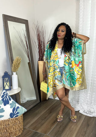 Tropical leaf kimono